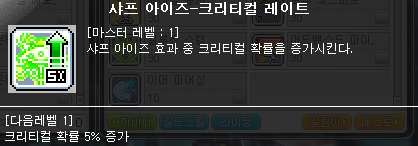 샤프 아이즈는 크리티컬 데미지와 크리티컬 확률을 올려주는 버프입니다.
